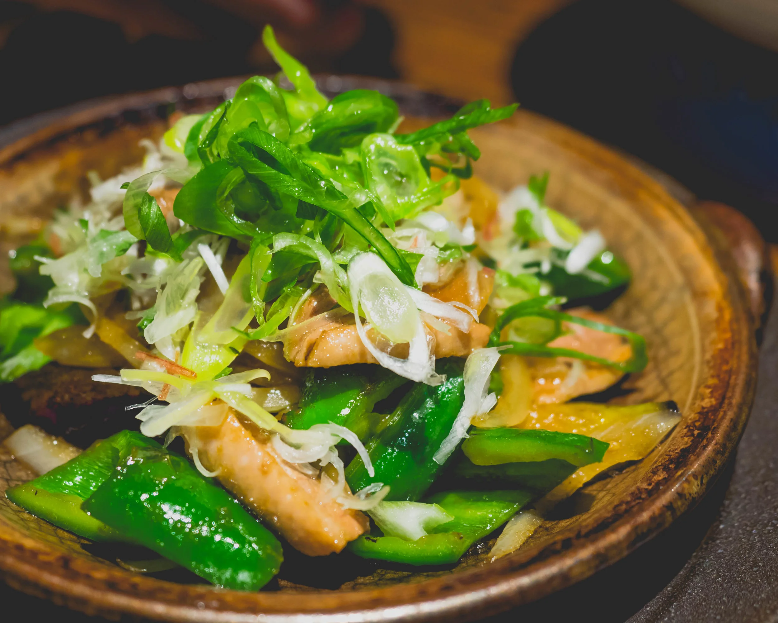 crossbreed duck with fried kyoto vegetables.