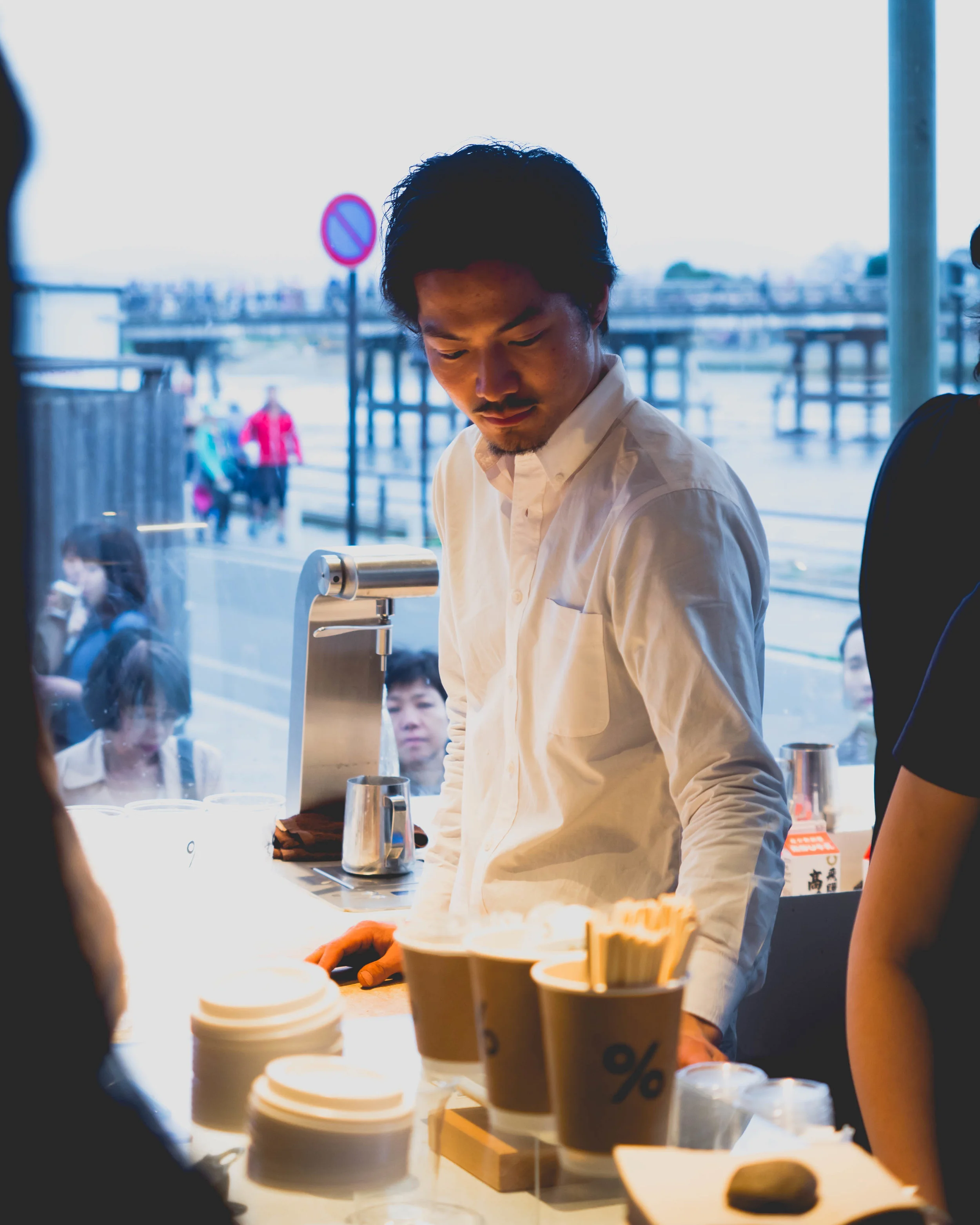 our longest wait for coffee was at % arabica in arashiyama, but it was worth the wait. i really love that japan has so many tiny, adorable, beautifully designed coffee shops.