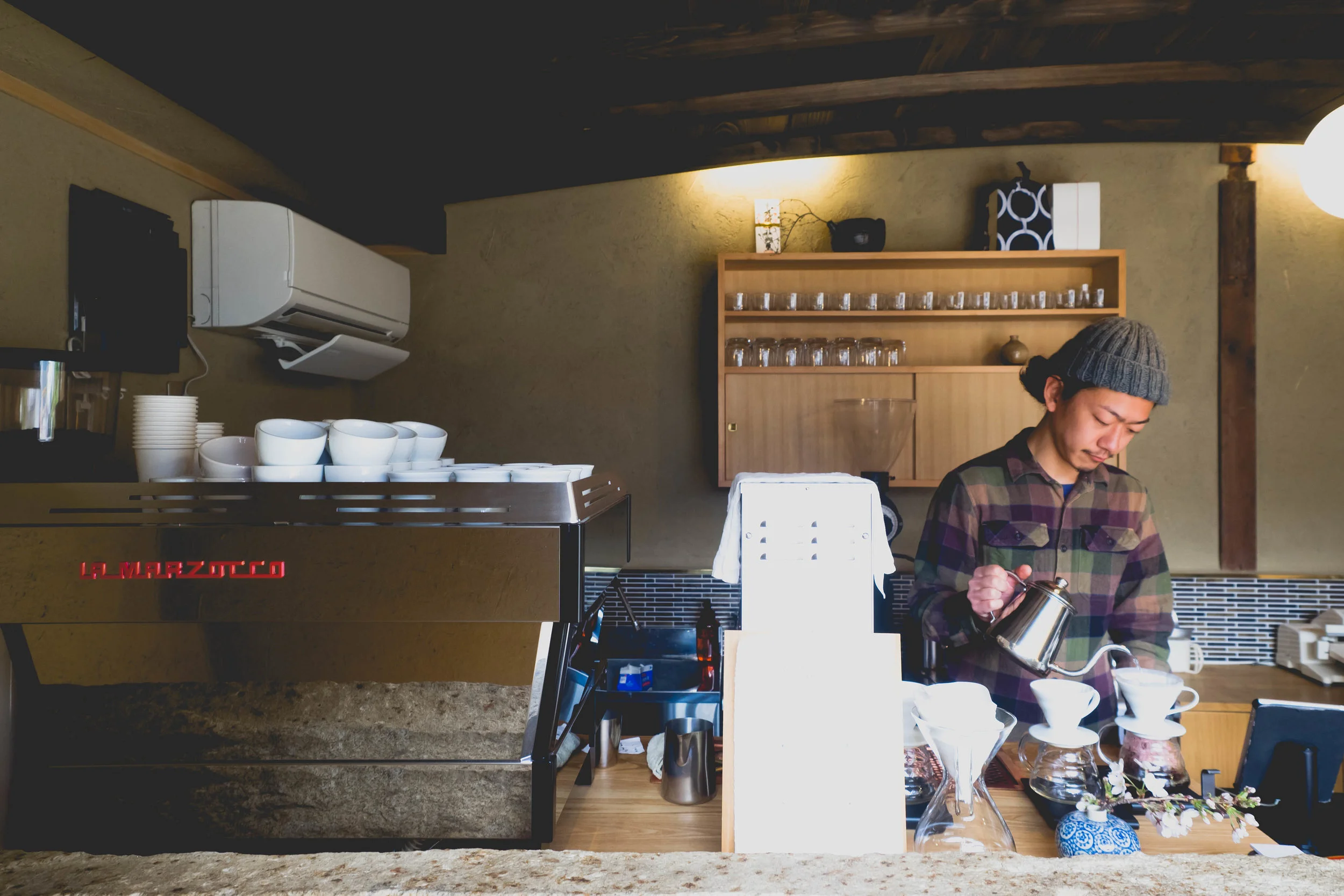 in the back corner of a parking lot, was weekenders coffee - an adorable coffee shop with a little japanese garden and moss-covered awning that serves one of the best cups of coffee we had in japan.